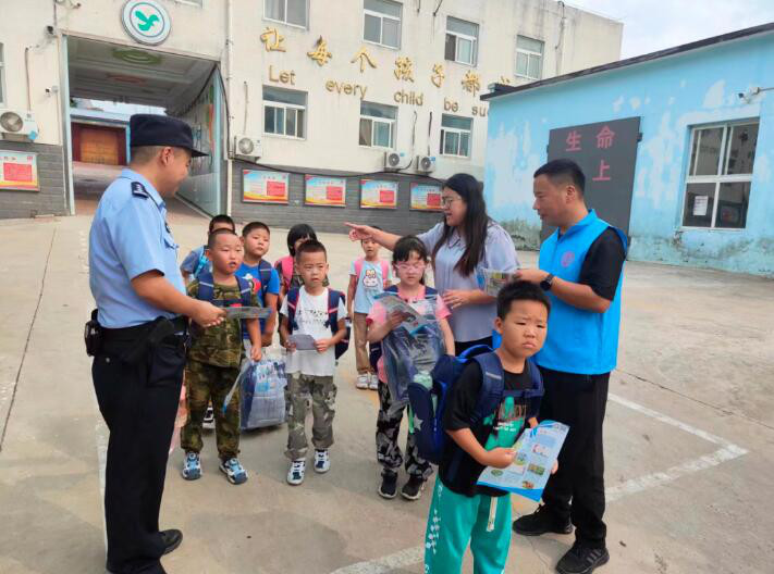 长阳镇组织广阳派出所民警、禁毒专职社工在公议庄小学开展禁毒宣传活动,向学生和家长发放禁毒宣传折页、现场讲解毒品的种类与危害等知识。