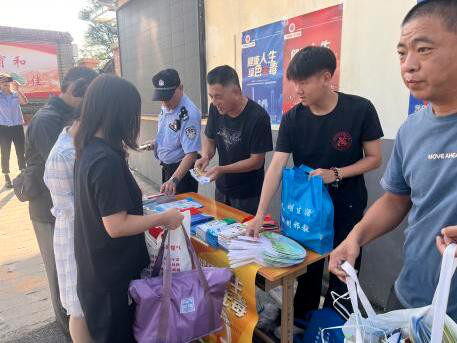 工作人员走进校园,通过发放禁毒宣传资料、张贴禁毒海报等形式,为前来报到的学生和接送学生的家长讲解毒品种类、毒品危害、常见伪装毒品以及如何防范毒品等知识,进一步提高了青少年的毒品预防能力和禁毒意识。