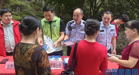 图为禁毒民警向群众发放禁毒宣传手册。中国禁毒网发
