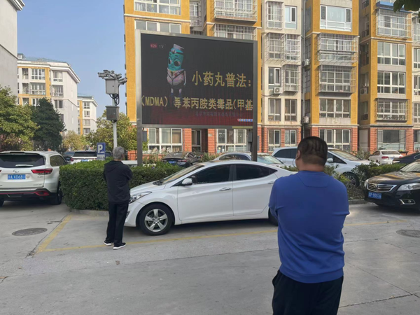 梨园镇综治办在大马庄村开展禁毒宣传活动。工作人员通过LED显示屏滚动播放禁毒宣传片,过往群众驻足观看,取得了良好的成效,大家纷纷表示,学到了好多关于防毒、拒毒的知识,进一步了解了什么是毒品、毒品的种类以及新型毒品的危害等方面的知识;同时,工作人员向在场群众强调,新型毒品的伪装性很强,要时刻注意防范,也呼吁大家成为禁毒志愿者,为身边人传递禁毒相关知识,为禁毒工作贡献出自己的力量。通过此次活动,营造了全民参与禁毒的良好氛围,使禁毒观念更加深入人心,进一步增强了村民群众抵御毒品侵害的能力。