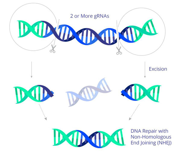 众所周知,CRISPR-Cas9基因编辑能够精准地对DNA双链进行切割,导致DNA双链断裂,基于这一原理,我们可以通过CRISPR-Cas9对已经整合到人体染色体中的HIV病毒基因组进行切割。