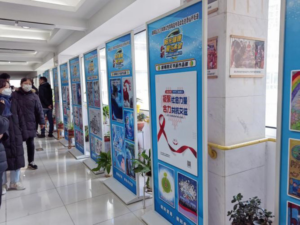 活动中,区疾控中心工作人员与禁毒志愿者一起为现场群众发放知识宣传折页,引导群众参观并介绍展出的防艾禁毒主题海报及书画作品。区疾控中心遴选出历年自主设计的主题海报和辖区高校艾滋病日主题海报大赛优秀作品进行展出,凸显全社会关注艾滋病,关心感染者及共同参与艾滋病防治宣传的良好氛围。居民群众认真观看禁毒防艾主题作品展,主动向工作人员了解各种各样的禁毒知识,积极参与仿真毒品、禁毒知识竞猜等各环节活动。在沉浸式体验中,了解国家禁毒法律法规,掌握了禁毒防艾相关知识。