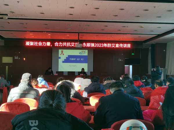 为了进一步增强社区居民预防艾滋病的意识,普及艾滋病防治知识,遏制艾滋蔓延,形成人人关注、人人参与的防艾氛围。12月1日上午,通州区疾控中心联合永顺社区卫生服务中心举办了“凝聚社会力量,合力共抗艾滋”专题防艾知识讲座,永顺社区卫生服务中心工作人员及永顺镇近一百名居民参加活动。