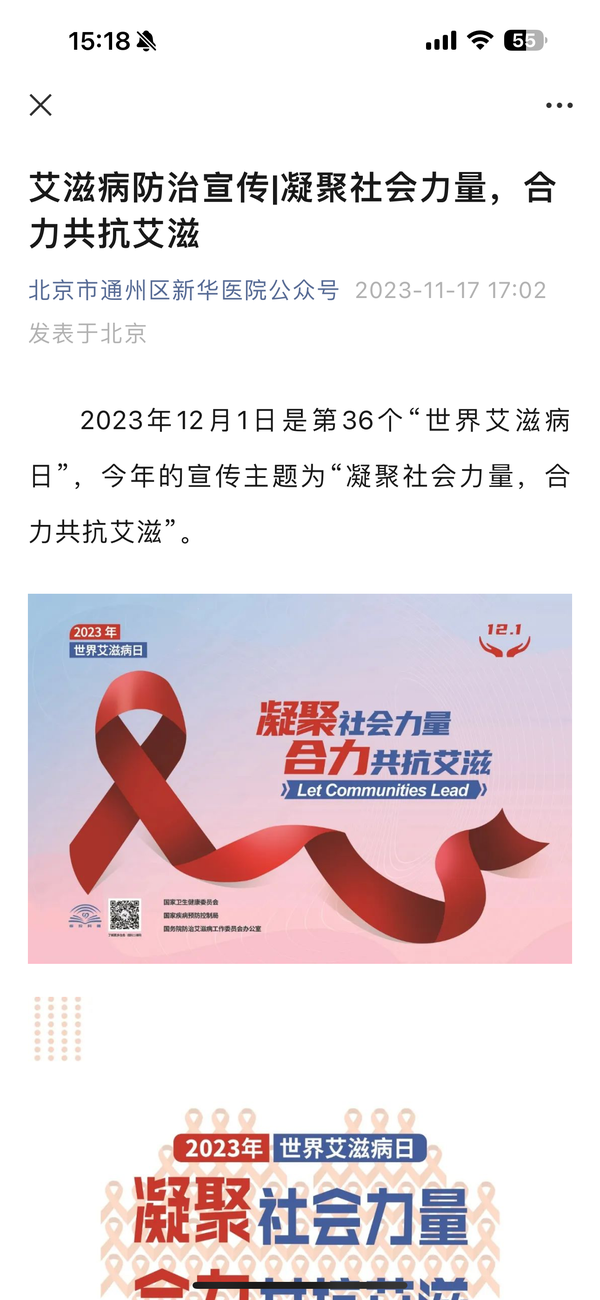 通州区新华医院开展“世界艾滋病日” 主题宣传活动