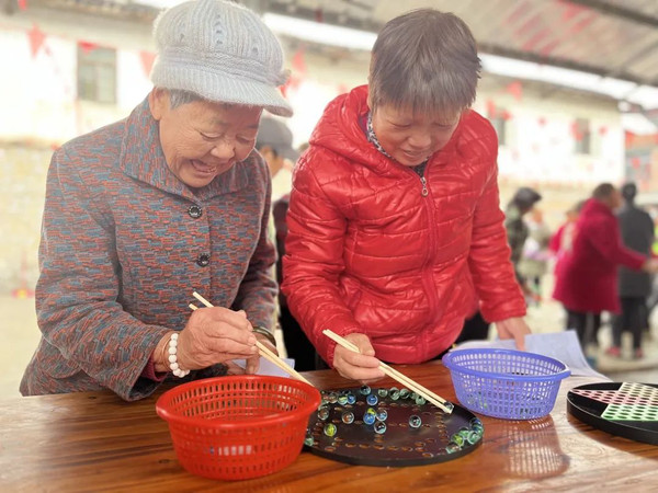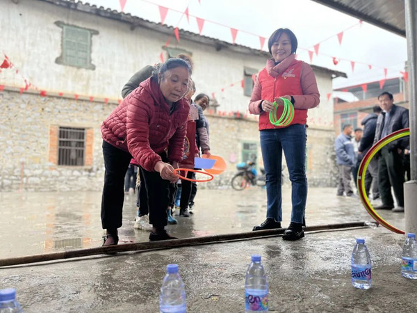 当天,志愿者还组织在场村民举行了趣味游园活动,村民们积极参与,有序排队,依次开展投圈、夹弹珠、旱地钓鱼等游园活动,现场气氛热闹非凡,群众热情高涨。
