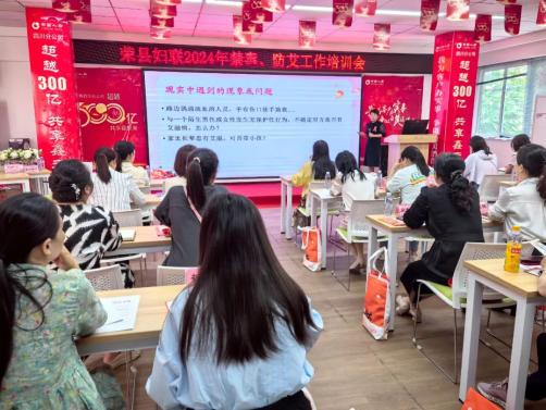 为进一步打造平安荣县,提升全县妇女禁毒、防艾、反电信诈骗电诈工作能力。5月14日,荣县妇女联合会开展禁毒、防艾、反电信诈骗工作培训会,21个镇、街妇联主席参会,县妇联副主席毕爱丽同志主持。
