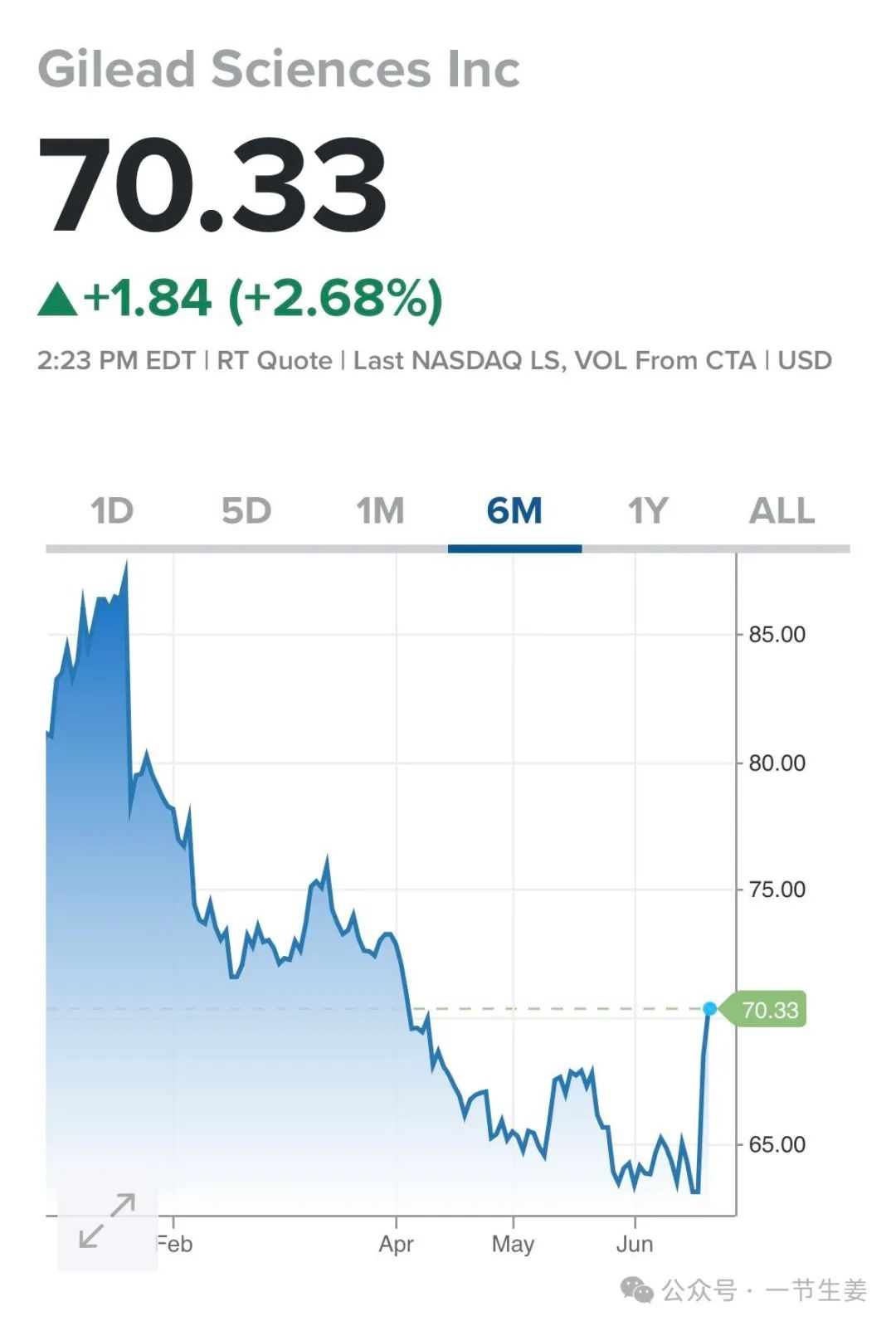 10%的涨幅,并不能体现来那卡帕韦100%的保护率。100%的保护率已经没有上升的空间了,但吉利德的股价还应该有上升的空间。当然,这需要来那卡帕韦的效果能在其他的临床试验里进一步坐实,并能获批上市 。