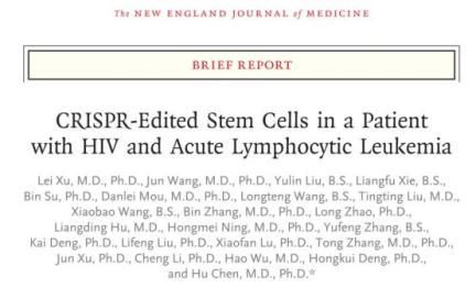 也有研究团队开始尝试先用基因编辑技术进行改造,再进行干细胞移植。2019年9月11日,北京大学邓宏魁团队、陈虎团队、首都医科大学附属北京佑安医院吴昊团队合作在《新英格兰医学杂志》(NEJM)发表研究论文。