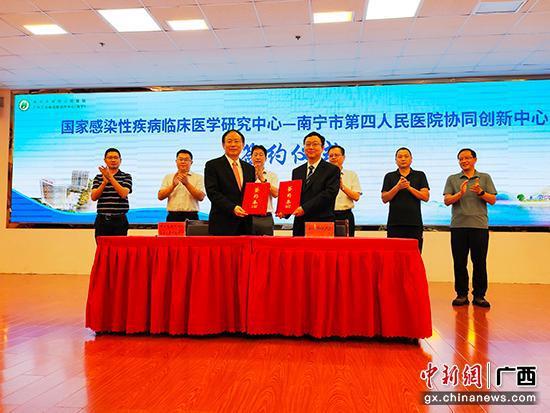 9月12日,国家感染性疾病临床医学研究中心与南宁市第四人民医院签署协同创新中心协议。记者黄艳梅 摄