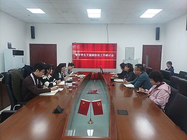 2024年11月5日10时,北京工业大学化学与生命科学学院党委副书记班旻、团委书记陈昕与学生代表到访区疾控中心,与疾控中心党总支副书记刘英杰、性病艾滋病防治科科长王丽娟、副科长丁海峰、宣传办主任胡尧及相关工作人员就青年学生艾滋病防治工作进行研讨。