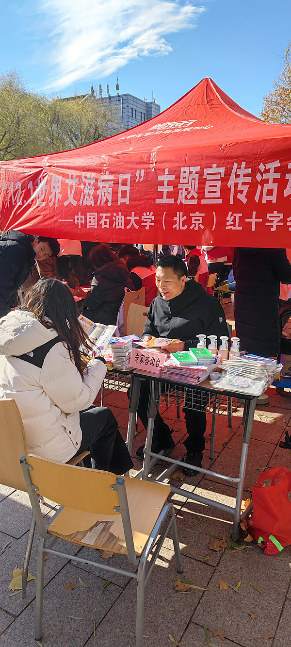 2024年12月1日是第37个“世界艾滋病日”,昌平区以世界艾滋病主题宣传日为契机开展“社会共治,终结艾滋,共享健康----防治性病、促进生殖健康”性病防治主题宣传周活动。11月28日下午,区卫健委、区疾控中心、区妇幼保健院、城北社区卫生服务中心与中国石油大学校医院联合在中国石油大学北校区南广场开展了“青春要爱不要艾”主题宣传活动,现场300余人参加了此次活动。