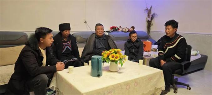 吉达夫一(中)与即将外出务工的村民交流。昭觉县委禁毒办供图