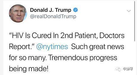 特朗普一大早很激动,这是艾滋病治疗的重大里程碑。看来,尽管每天骂纽约时报,他还是经常看纽约时报的。