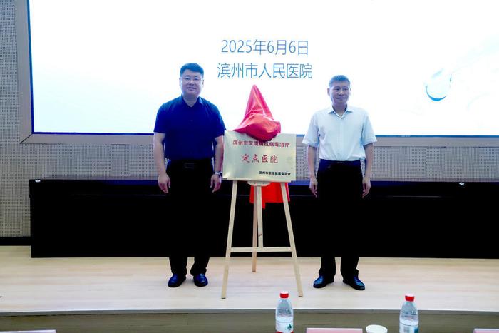 期间举行了滨州市市级艾滋病抗病毒定点医院授牌仪式,滨州市卫生健康委健康保障中心党支部书记、主任郑云超为滨州市人民医院授牌,滨州市人民医院副院长于洪建代表人民医院接牌。