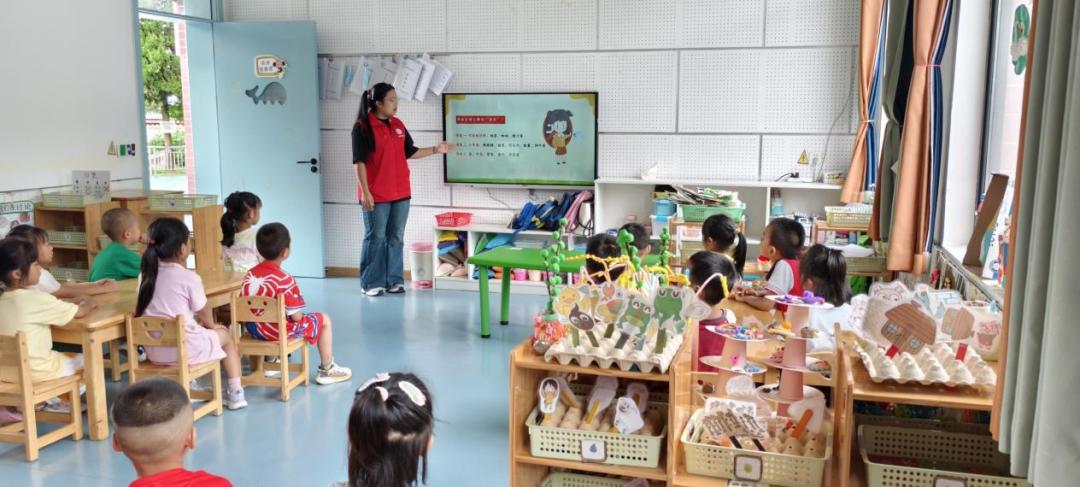 在旗山社区,志愿者以趣味互动形式,为孩子们科普防性侵、辨别电信诈骗网络语、禁毒防艾、推广普通话等知识,以喜闻乐见的趣味游戏方式与社区留守儿童相互互动、共同学习,切实提高孩子们的自我防范意识和日常健康知识,同时给予留守儿童陪伴、送去温暖关怀,助力健康成长。