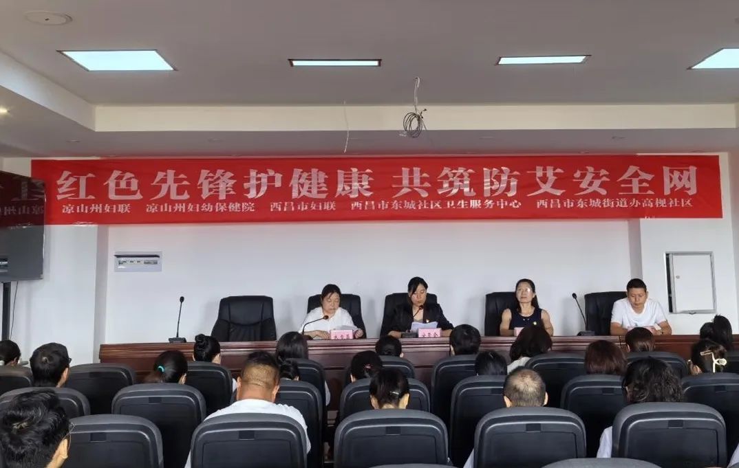 为积极响应凉山州委组织部“红色引领·共抗艾滋”主题宣传教育活动号召,充分发挥党组织和党员在防艾工作中的模范带头作用,2025年7月14日,凉山州妇联党支部联合州妇幼党支部、西昌市妇联党支部、西昌市东城社区卫生服务中心以及西昌市东城街道办高枧社区,在西昌市高枧家园共同开展“红色先锋护健康 共筑防艾安全网”主题活动。