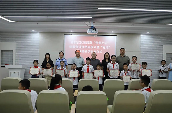 活动有关负责人介绍,“青青少年”禁毒宣讲团项目是青白江区公安分局、区关工委、省成都第二强戒所、区教育局、区妇联、团区委精心打造的青少年禁毒预防教育品牌。历经四期淬炼,该项目通过系统培训、沉浸式基地研学、实践宣讲考核等环节,成功培育了一批批具备专业素养和社会责任感的青少年禁毒宣传骨干。通过“小手拉大手”影响家庭、辐射社会,有效延伸了禁毒宣传触角,为筑牢全民禁毒防线探索了“青白江路径”。