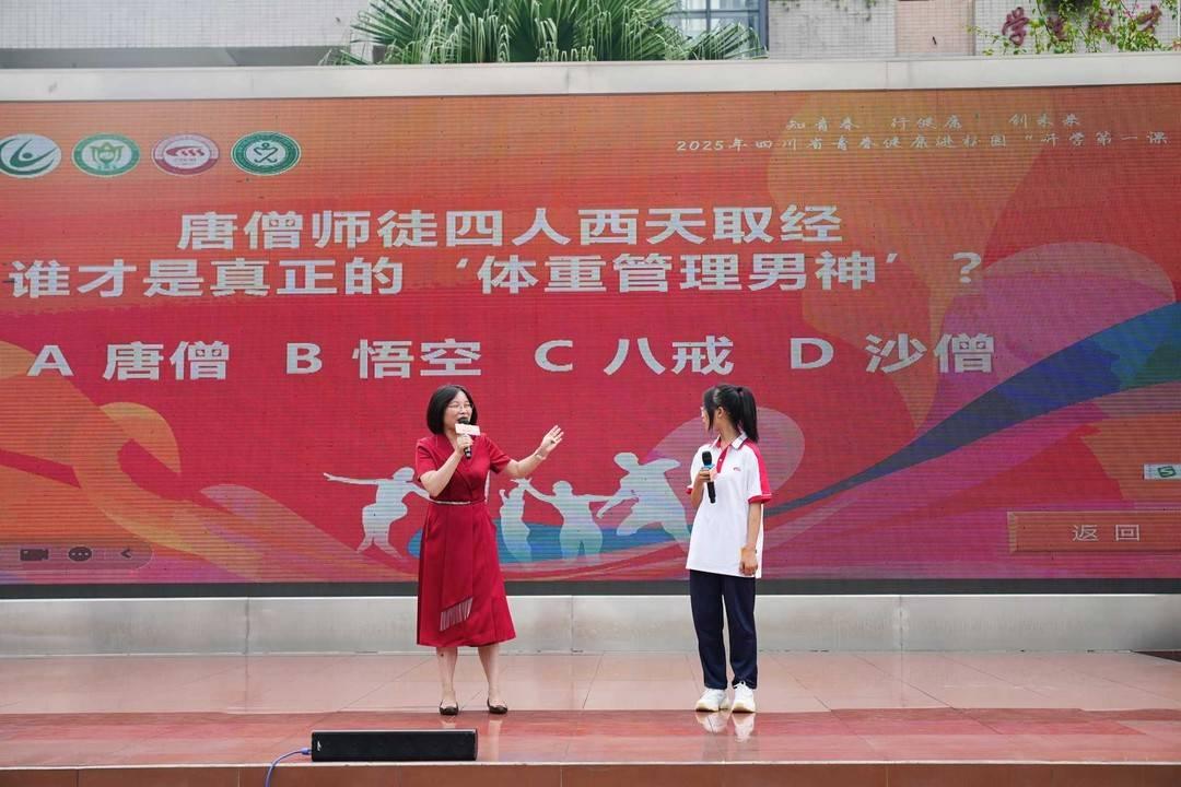 趣味问答环节,程静围绕体重管理、性与生殖健康、心理健康、人际交往、艾滋病防治等青春健康主题,提出了一系列生动有趣的问题。“小猪妖在‘浪浪山’打工,哪种运动最适合缓解职场疲劳?”“哪吒和敖丙一起盯电脑写‘龙族贸易调查报告’,2小时没挪窝,咋护眼睛?”等,同学们纷纷踊跃举手抢答,现场气氛热烈非凡。每答对一题,同学们都能获得一份精美的小礼品,这不仅激发了同学们的参与热情,更让他们在轻松愉快的氛围中学习到了丰富的青春健康知识。